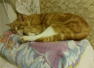 Har duschat lite tidigare i kväll men känner mig varm nu ändå. Fönstren på vid gavel, men det står stilla ute, ingen luft kommer in trots "tvärdrag". Förmodar att Pelle katt hoppar ut i natt (har mitt sovrum på andra våningen) och via verandataket ner i trädgården, Nicke är lite fegare och brukar stanna inne hos mig. Just nu ligger han på min skrivare, där jag har "bäddat" med en handduk för att slippa hår etc på den.